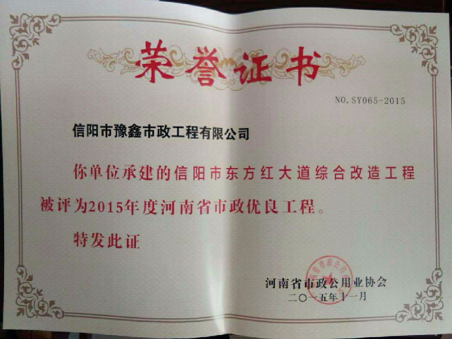 好風(fēng)憑借力,送我上青云。近年來,公司積極參與城市市政基礎(chǔ)設(shè)施建設(shè)施工,積極參與市場競爭,先后承擔(dān)施工了市政府重點(diǎn)工程南京路道路改造工程、春曉路道路改造工程,東方紅大道道路改造工程、龍江東路新建工程等重點(diǎn)民生工程,其中南京路道路改造工程被省建設(shè)廳評為“中州杯”, 春曉路和東方紅大道道路改造工程被省建設(shè)廳評為“省優(yōu)工程”,成為城區(qū)一道道亮麗的風(fēng)景線。參與施工了市典范小區(qū)“臺北城上城”、“恒大名都”以及師范學(xué)院、職業(yè)技術(shù)學(xué)院、交警支隊和軍區(qū)道路工程,參與施工了雞公山管理區(qū)、南灣管理區(qū)、明港鎮(zhèn)和羅山縣等部分道路小區(qū)工程施工,累計大小各類施工工程三百余項,企業(yè)影響力不斷擴(kuò)大、輻射力不斷增強(qiáng),市場份額不斷提高,企業(yè)信譽(yù)不斷彰顯,為信陽城市建設(shè)做出了積極貢獻(xiàn),為企業(yè)的可持續(xù)發(fā)展插上了騰飛的翅膀。